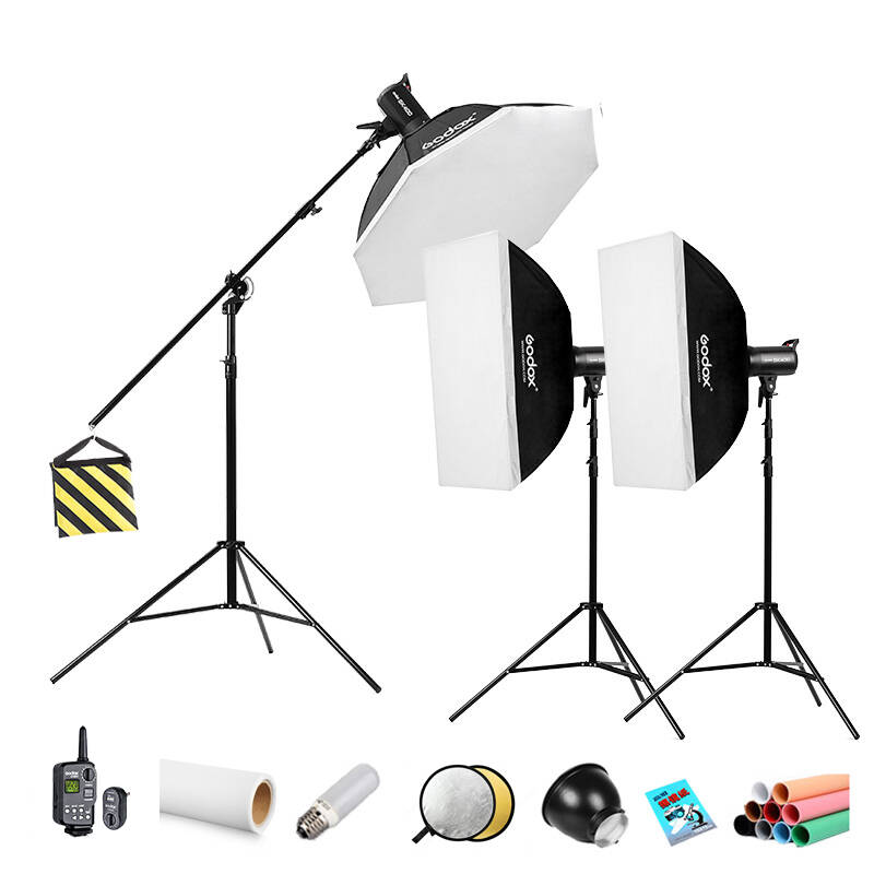 神牛(Godox)SK400摄影灯摄影棚影室闪光灯套装摄影器材影棚设备 三灯横臂套装