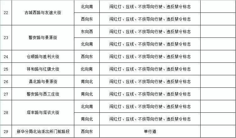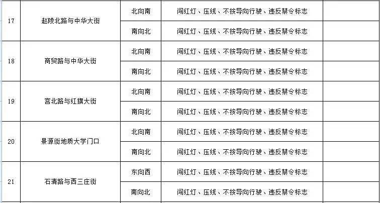 无极县:城区颍北路一线设置五处“电子警察”抓拍设备,对各类交通违法行为进行抓拍。分别为颍北路与朝阳大道口、幸福路口、新开路口、唐尧大道口、玉城大街口。