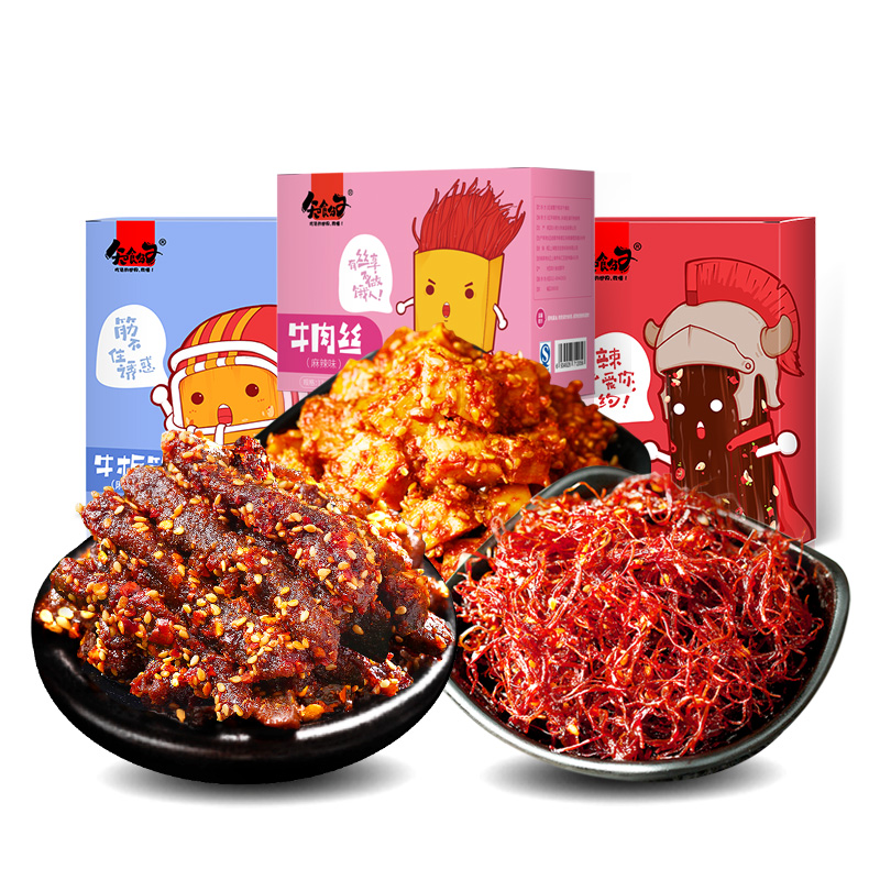 四川风味零食,精选新鲜优质牛肉,选用上等调味料,现代简约包装设计,四组合四种口味满足你的食欲。