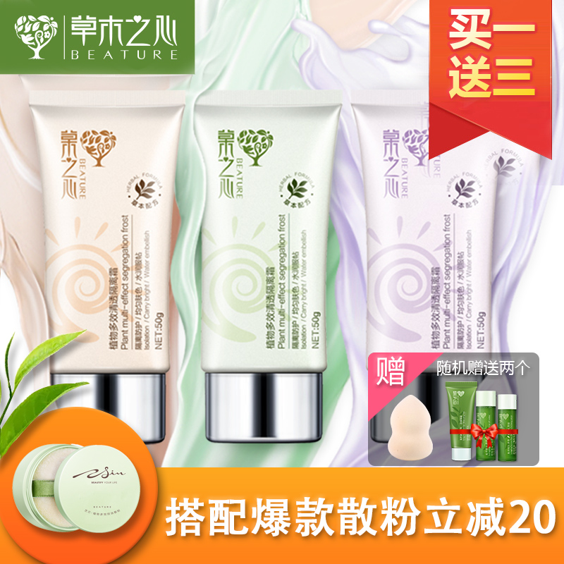 草木之心隔离霜隐形毛孔持久保湿补水裸妆妆前乳面部提亮液紫绿色