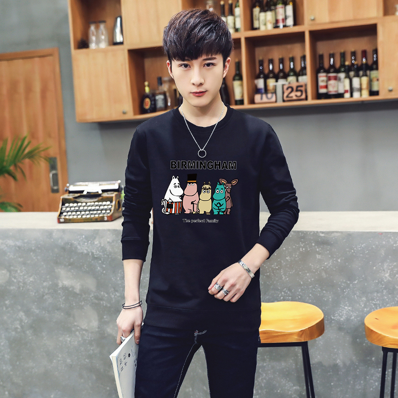 奢友秋冬季新款圆领百搭学生情侣卫衣男宽松长袖套头薄款t恤男士
