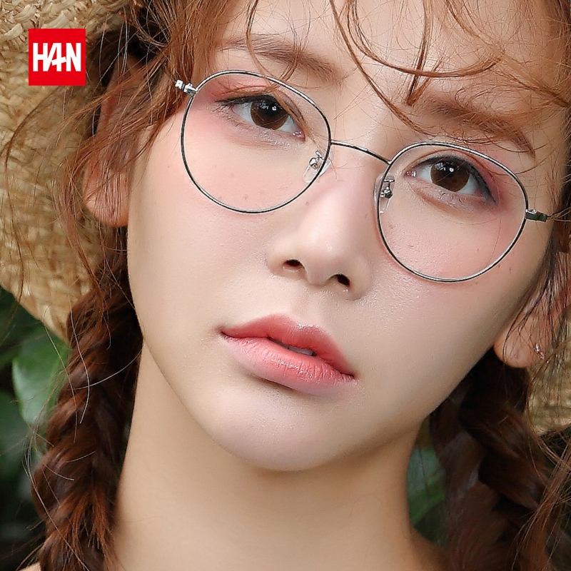 HAN防蓝光防辐射眼镜女圆框眼镜近视平光镜男无度数护目眼镜框架