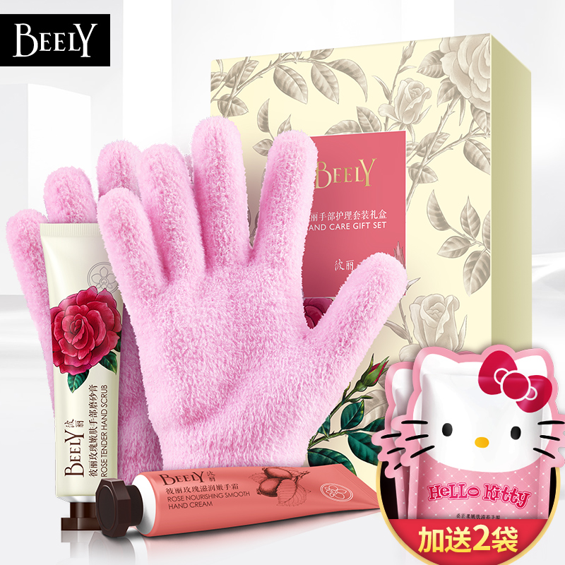 BEELY玫瑰凝胶嫩白手膜手霜护理套装 手套保湿嫩滑磨砂去角质死皮