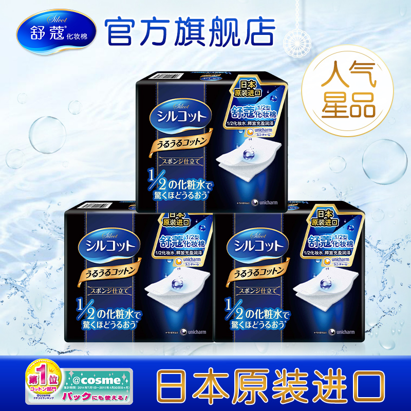 Silcot/舒蔻 日本尤妮佳化妆棉1/2省水湿敷卸妆棉3盒 原装正品