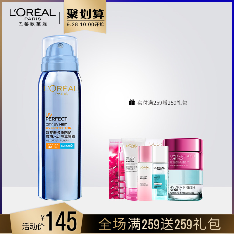 欧莱雅多重防护城市水活隔离防晒霜 夏补水保湿控油遮瑕防晒喷雾