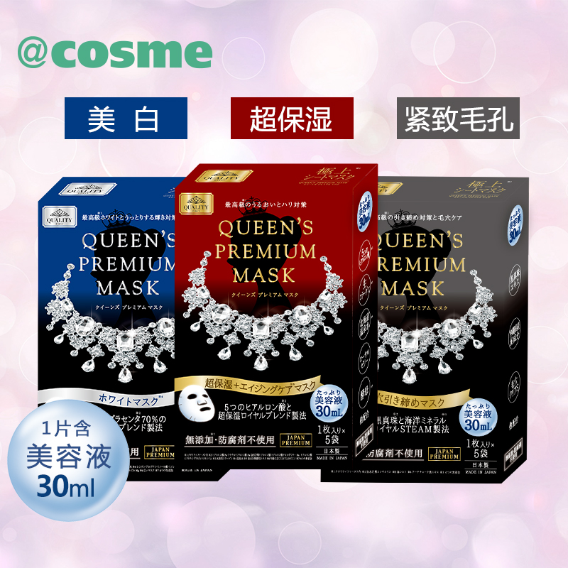 相同也是被明星遍及种草的皇后的隐秘钻石面膜,江疏影、谢娜都是它的超级粉丝。新出的钻石女王面膜,一上市整个系列便在日本引起热销,不论是性价比仍是面膜的全体质量都很棒。