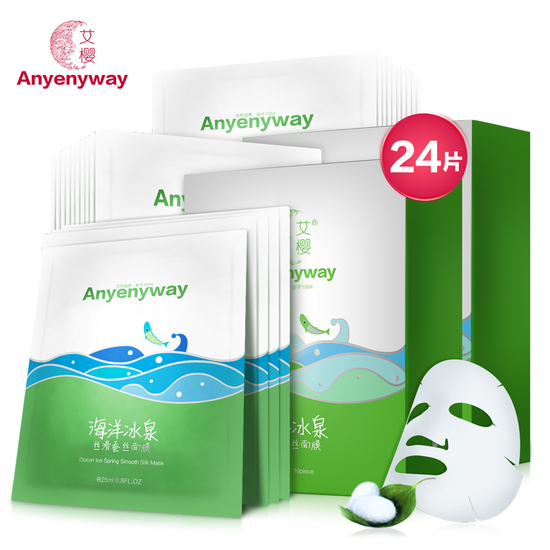 艾樱24片玻尿酸补水保湿蚕丝胶原蛋白面膜贴女 舒缓清洁收缩毛孔
