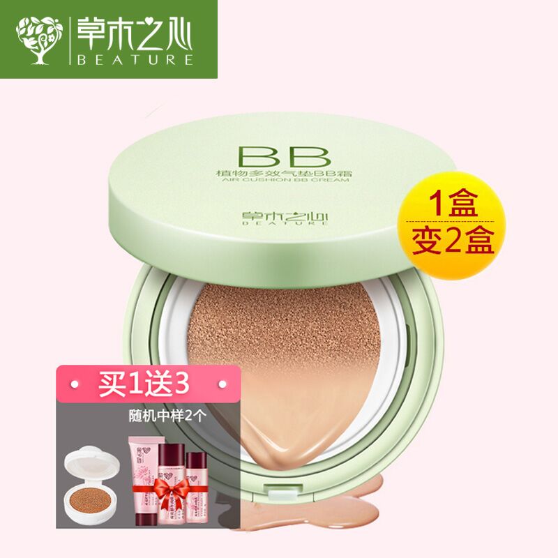 草木之心气垫bb霜补水遮瑕清透裸妆持久保湿隔离强不脱妆cc粉底液