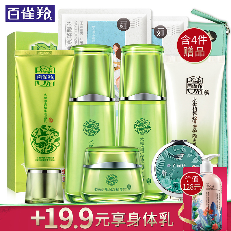 百雀羚草本 水嫩倍现护肤套装女 补水保湿控油化妆品套装 水乳霜