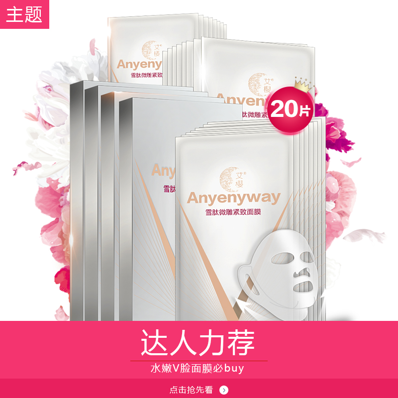 艾樱玻尿酸多效提拉紧致面膜贴20片收毛孔保湿补水滋润护肤品套装