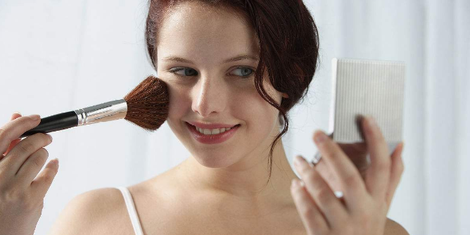 用化妆刷打上腮红拉修饰气色,红润气色更具有活力和精神面貌。