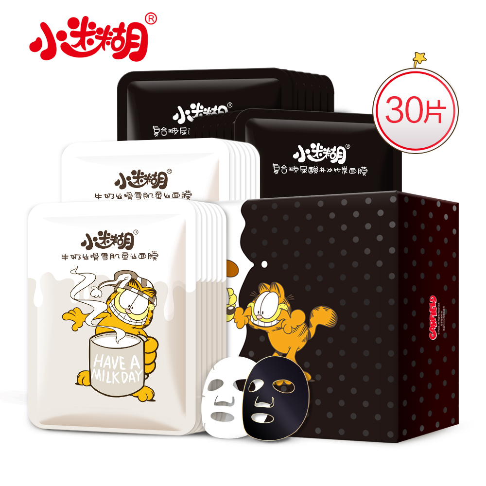 御泥坊小迷糊水润透亮玻尿酸黑白补水面膜贴30片春夏补水保湿提亮