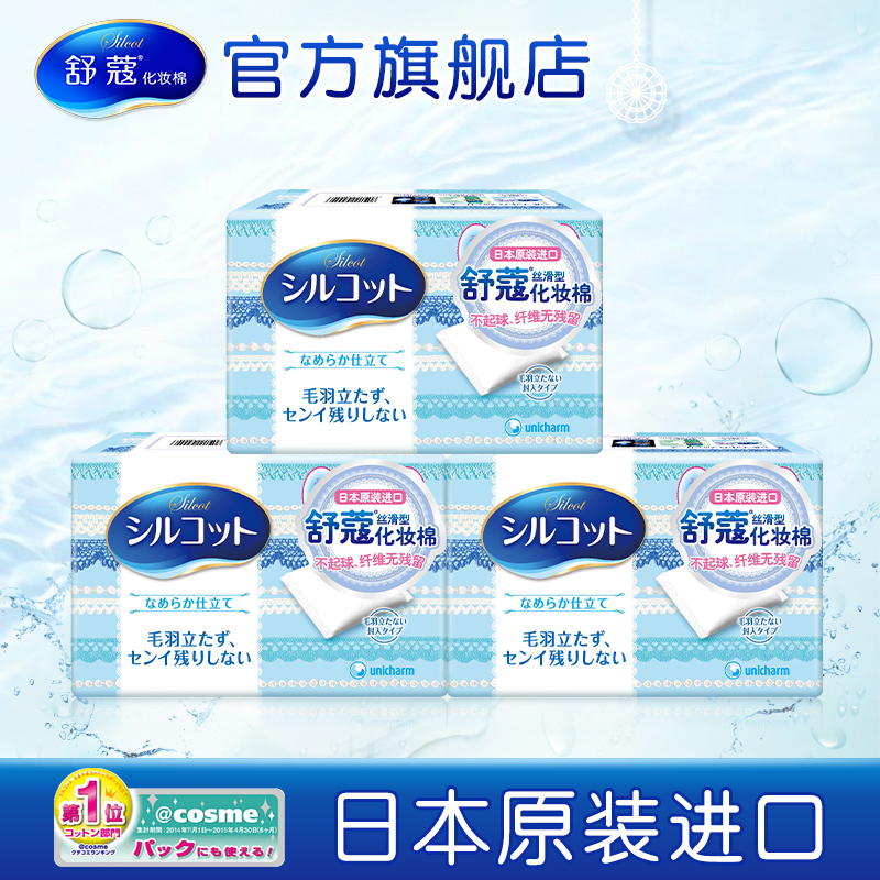 Silcot/舒蔻 日本尤妮佳丝滑型化妆棉加厚卸妆棉3盒 原装正品