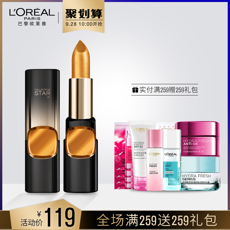 欧莱雅纷泽琉金唇膏,含有金闪,润泽度显色隐瞒力耐久性都遍及较好,性价比高。G101纷泽琉金色,其色彩纯度,金闪巨细密度等很适中,具有它便具有了各种色彩的人鱼姬色风格唇妆。