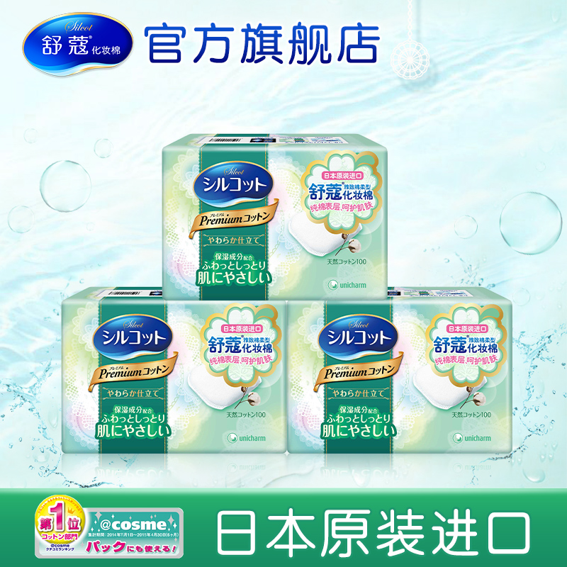 Silcot/舒蔻 日本尤妮佳化妆棉雅致棉柔纯棉卸妆棉3盒 原装正品