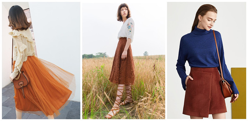 焦糖色的裙子最近可以说是备受追捧,深沉却不暗淡的色泽带着淡淡文艺气息,长裙温暖甜美,短裙气质优雅,是秋季日常出街拍美照的首选!