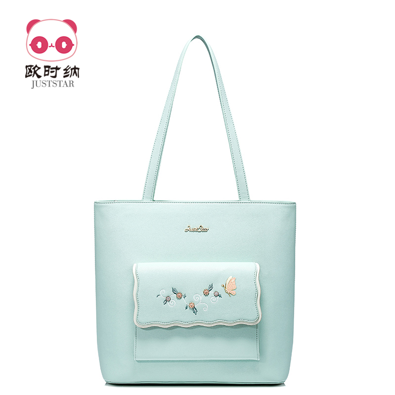 欧时纳女包2017夏季新款蝴蝶绣花百搭手提包包韩版单肩包托特包潮
