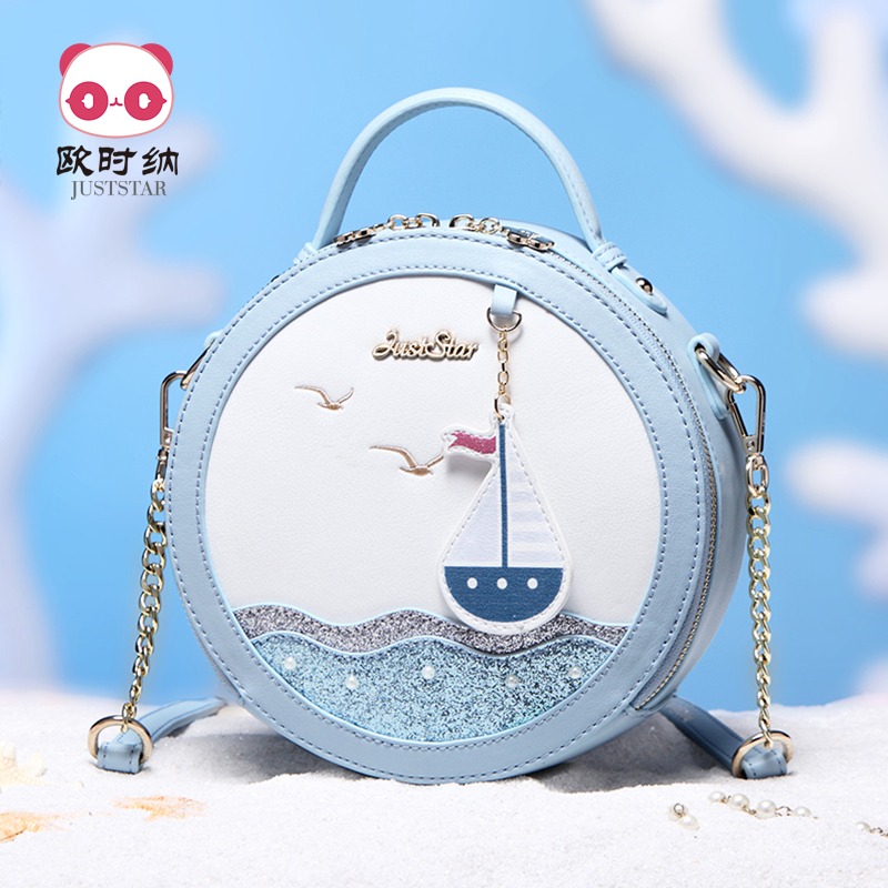 欧时纳女包2017夏季新款柠檬手缝钻单肩包斜挎包韩版链条小圆包潮