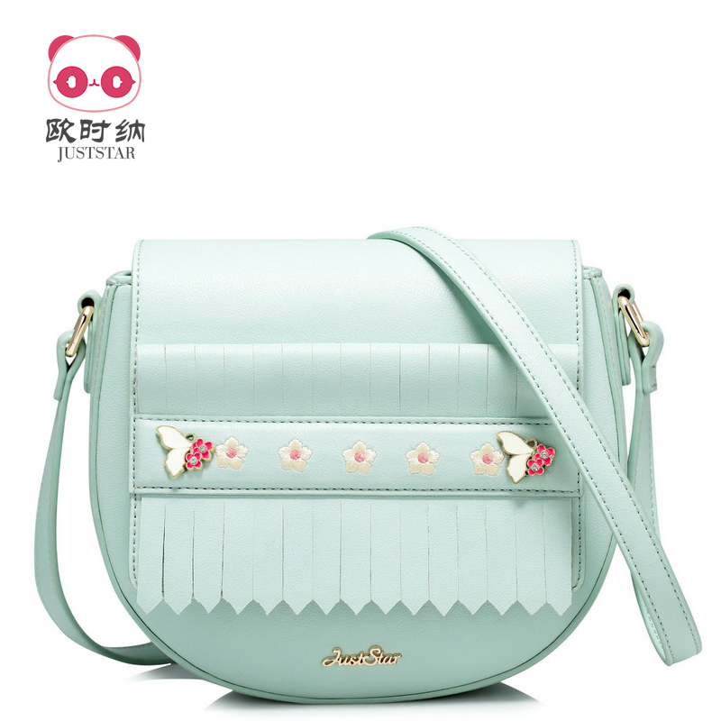 欧时纳包包女2017夏季新款蝴蝶刺绣单肩包韩版百搭流苏马鞍包