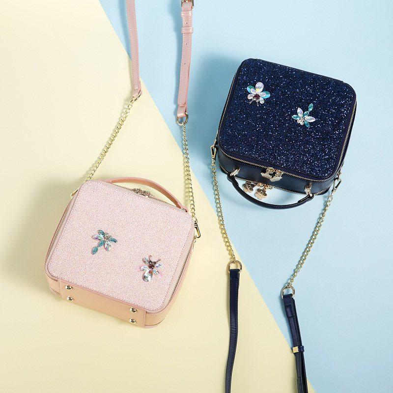 巧妙借鉴时尚铂金包抽带锁扣设计,创造出欧时纳五金花朵装饰锁,梦幻浪漫,精巧有趣,完全不用担心撞包呀。浪漫小花边,萌翻你的少女心,包身闪料璀璨细腻,就是要你的少女心闪闪发光呀。