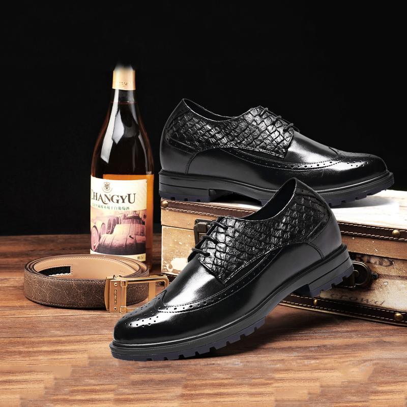 何金昌内增高男鞋7cm精品定制宴会婚鞋男士正装皮鞋布洛克增高鞋