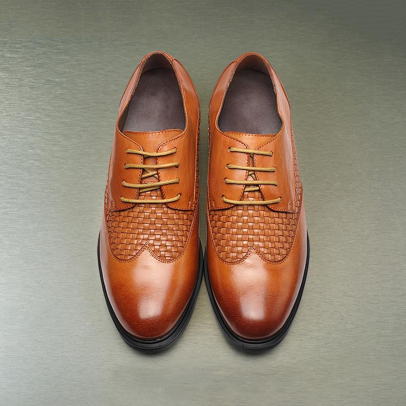 何金昌手工编织鞋男式隐形内增高鞋真皮鞋英伦复古商务正装德比鞋