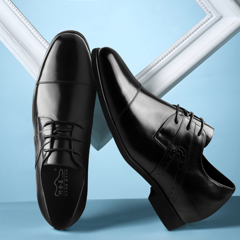 何金昌隐形内增高男鞋6CM商务正装皮鞋男士婚鞋英伦真皮增高鞋男