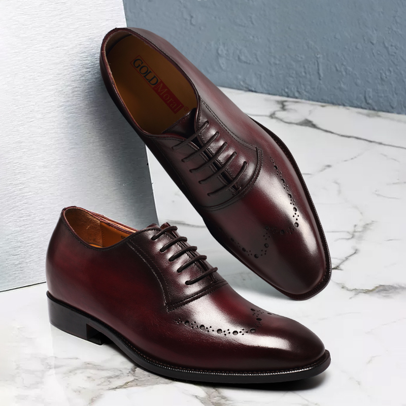 优雅的雕花穿梭于酒红色皮面,在擦色工艺的衬托下,并没有过多的掩盖住你的贵气,隐形增高7cm,从你的自信中,更能烘托出与众不同的气质,男人的魅力。