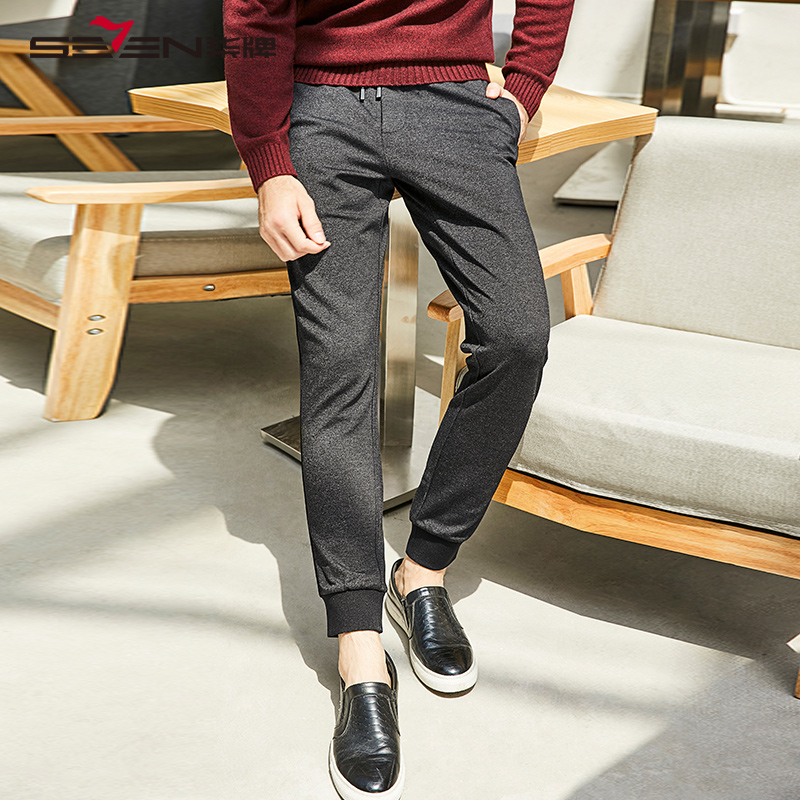 柒牌男装2017秋冬新款加厚哈伦裤收脚九分裤男束脚裤修身潮流长裤