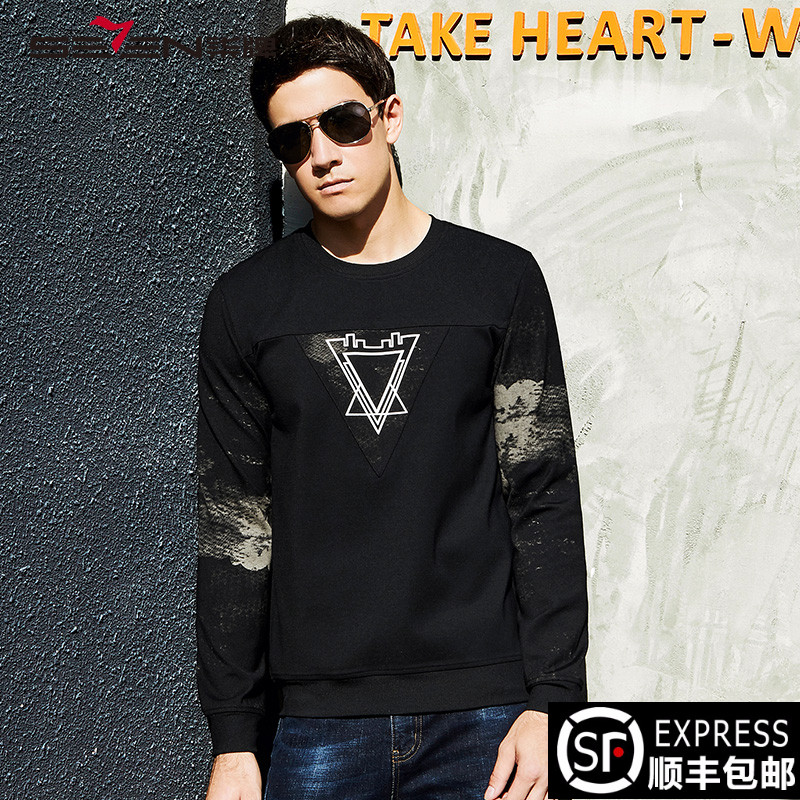 柒牌男装卫衣 2017秋冬新款时尚休闲印花套头长袖T恤卫衣男上衣