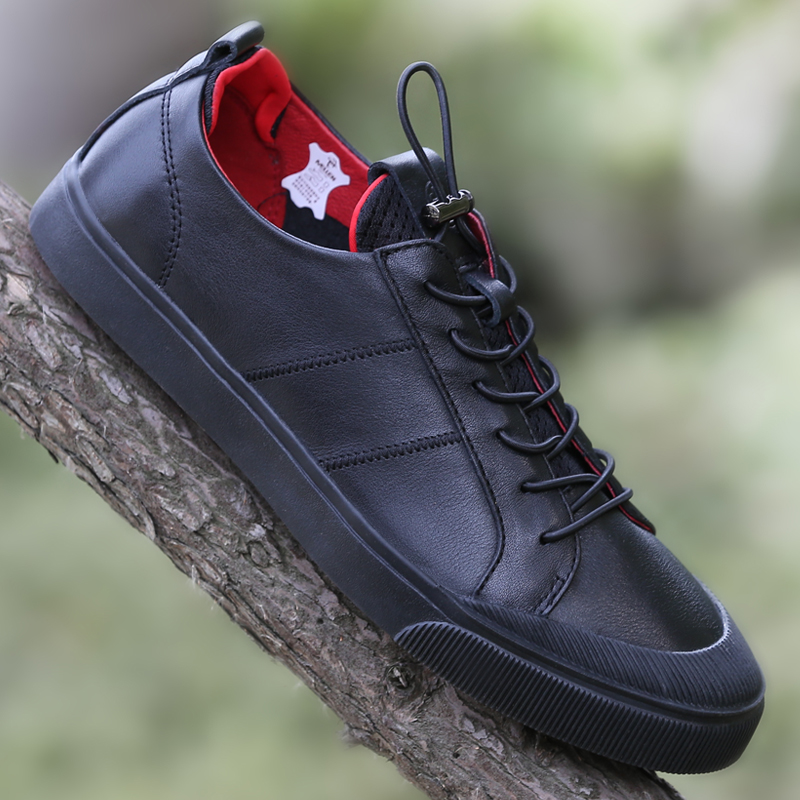 暗黑系的鞋子同样很酷炫。这款休闲潮流男鞋,满满的时尚休闲风,给你至简的穿着体验。采用优质头层牛皮和猪皮打造,质感细腻,手感光滑富有弹性,穿着舒适无比。搭配卫衣休闲裤,一身休闲范就出来了。