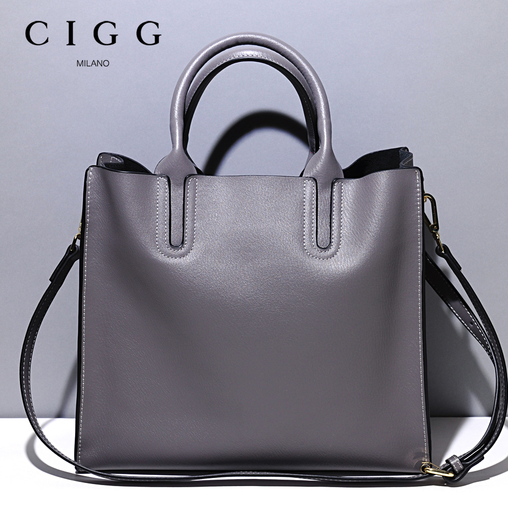 CIGG西歌真皮女包2017夏季新款简约手提包单肩托特包女士牛皮
