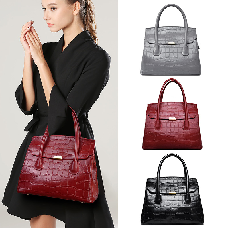 铂金包真皮女包大包2017新款鳄鱼纹牛皮包女士手提单肩斜挎包包女