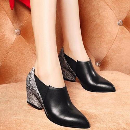 这款KumiKiwa秋冬真皮性感蛇纹粗跟单鞋,高端大气上档次,也是那么的凸显温文尔雅的柔美,让你穿的放心,穿脱方便,并且这款高跟的内里分布大量富有弹性的胶原纤维,经典的的设计风格。