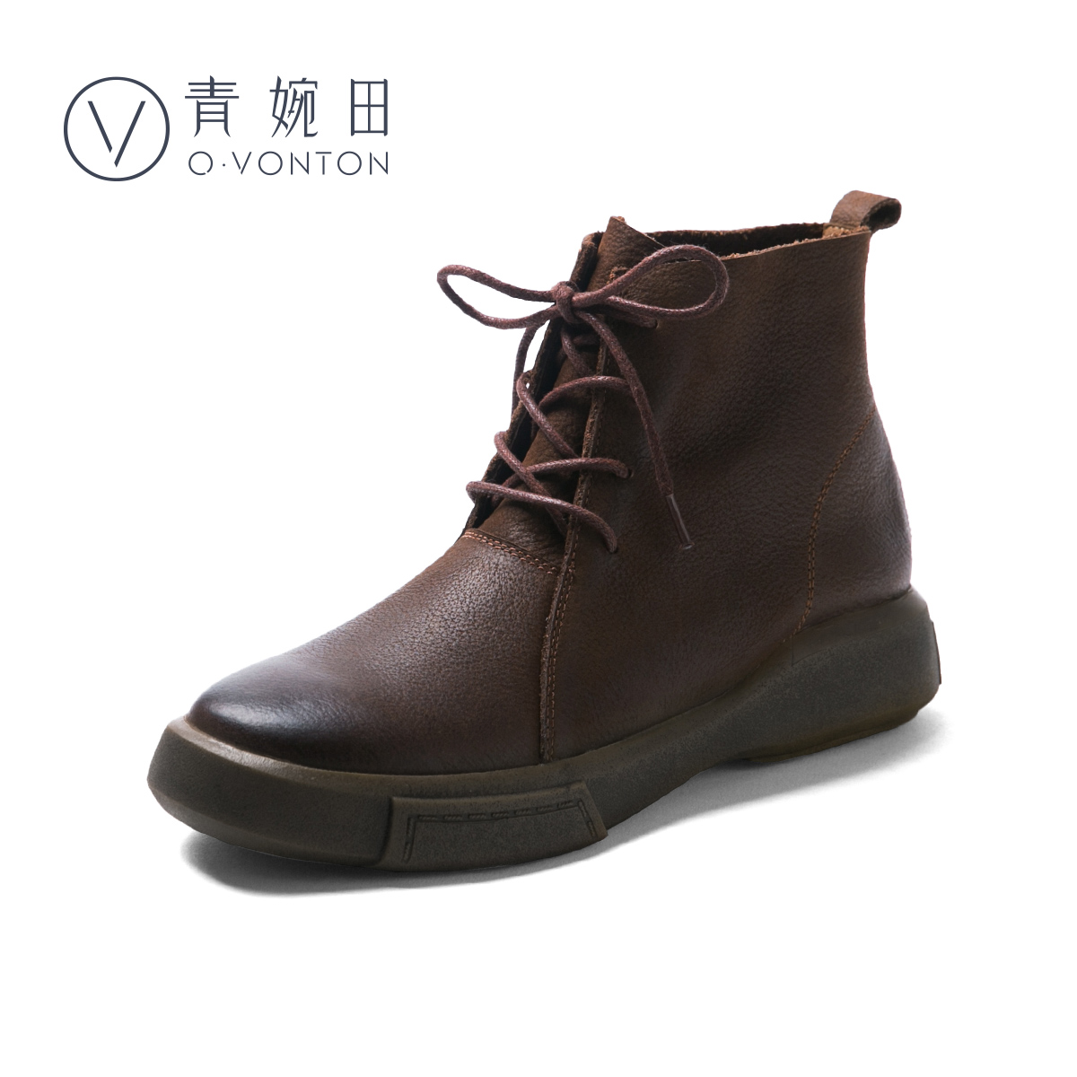 秋季2017新款短靴女复古英伦马丁靴厚底真皮女鞋平底系带