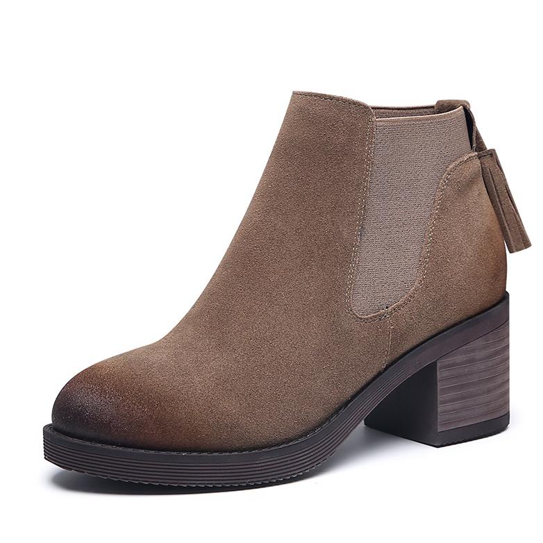 粗跟厚底短靴