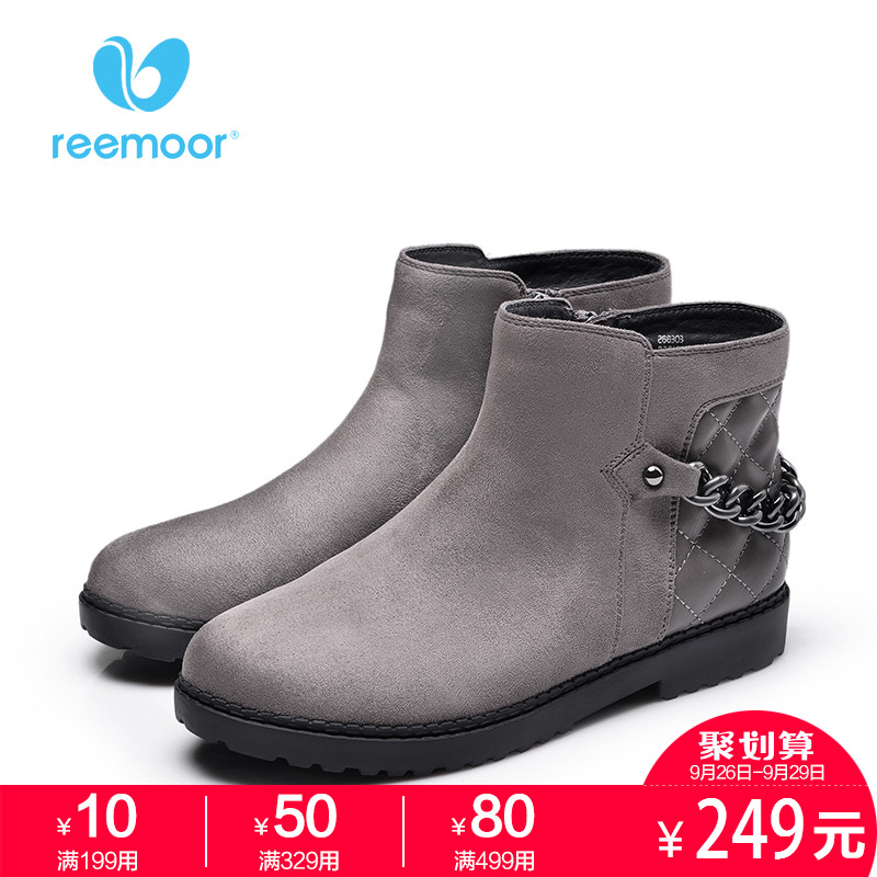 reemoor秋季新款平底单靴复古绒面短筒靴子细跟短靴女睿慕女鞋