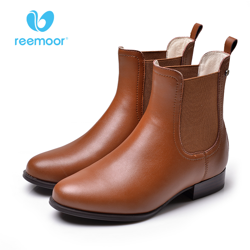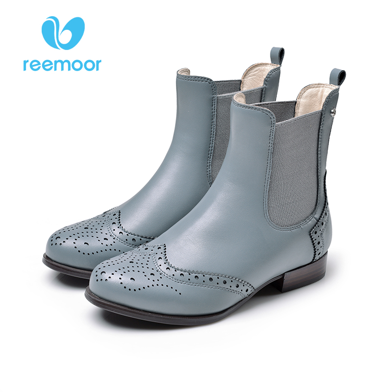 reemoor秋季新款女鞋英伦风粗跟切尔西靴松紧口短靴女睿慕女靴子