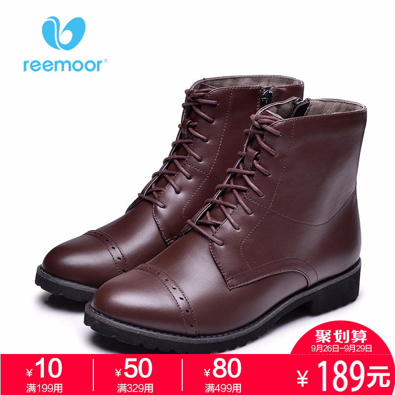 reemoor秋冬新款女鞋时尚拉链粗跟马丁靴英伦系带短靴女睿慕女靴