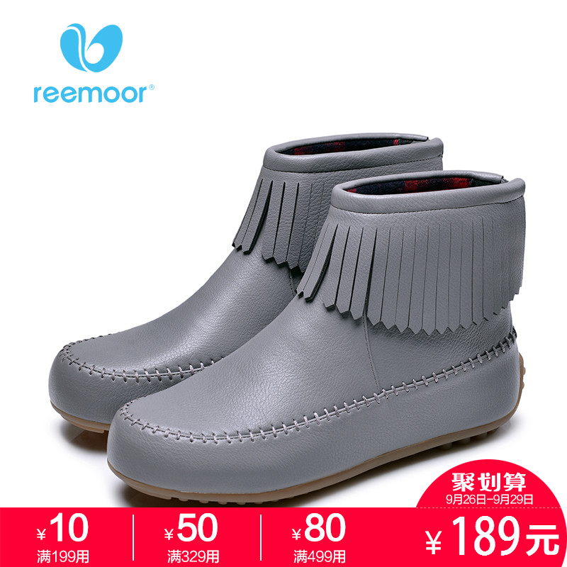 reemoor秋冬新款流苏短靴女防滑平底靴圆头拉链高帮靴子睿慕女鞋