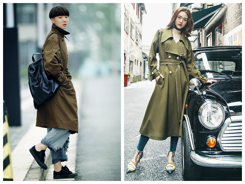 翻看刘雯的微博,不难发现,她秋冬的私服或街拍已经被军绿色承包了。来看看第一件军绿色的单品风衣,可以抵抗转凉的天气,再搭配一件雪纺连衣裙,大气有质感。风衣尽量挑选中长以上长度的款式,有灵动飘逸感。