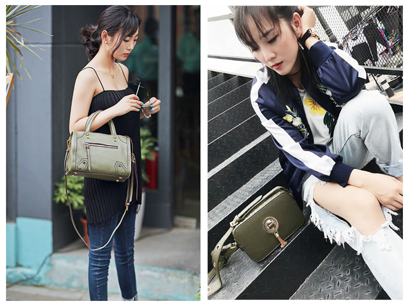 第三件军绿色单品就要提一下军绿色斜挎包了。包包在配饰中的地位举足轻重。除了丝毫不逊色于黑色包包的点亮造型功能外,又不突兀抢风头,能呼应我们穿搭上的小心机。可以试着搭配白色衬衫和黑色背带裤。