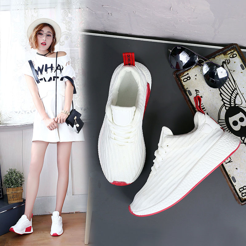 妙钻运动鞋女2017秋季新款厚底增高休闲跑步鞋韩版百搭小白鞋单鞋