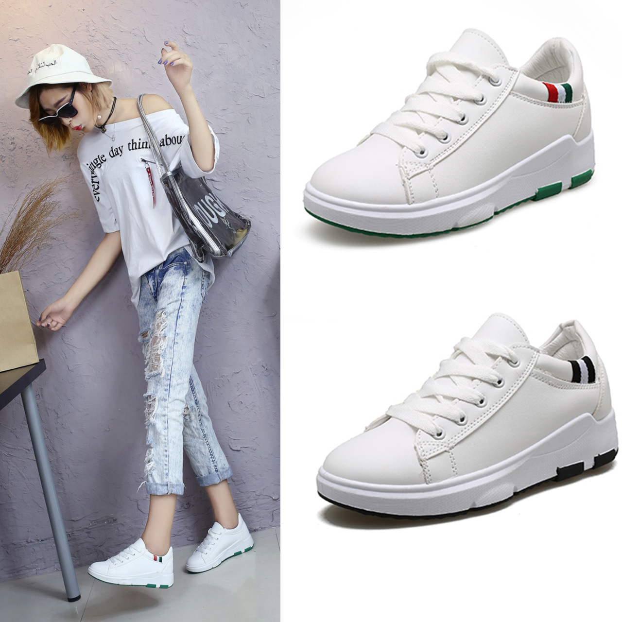 妙钻女鞋秋季新款休闲小白鞋2017韩版圆头厚底增高跑步百搭女单鞋