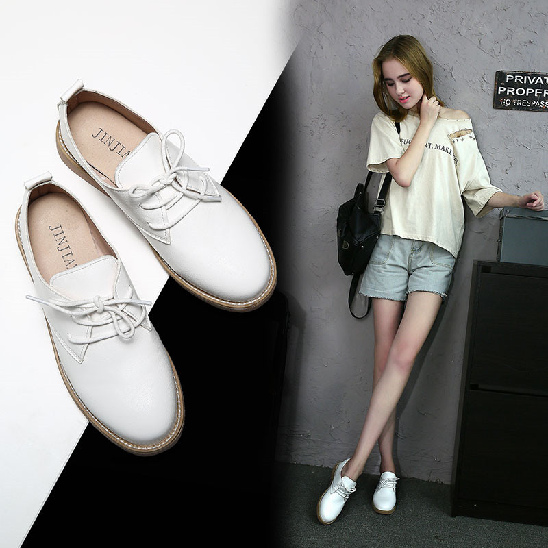 妙钻2017春秋新款单鞋平底小皮鞋英伦风复古真皮韩版休闲小白鞋女