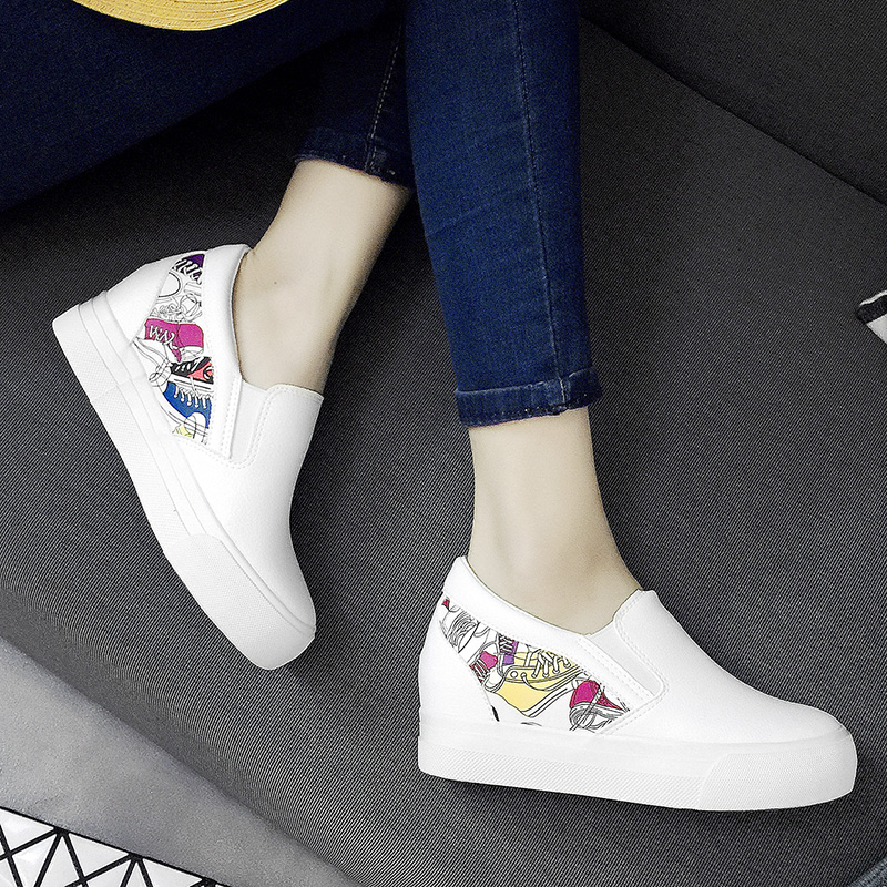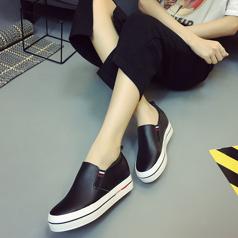 懒人小白鞋女2017秋季新款松糕跟厚底乐福鞋套鞋低帮内增高单鞋