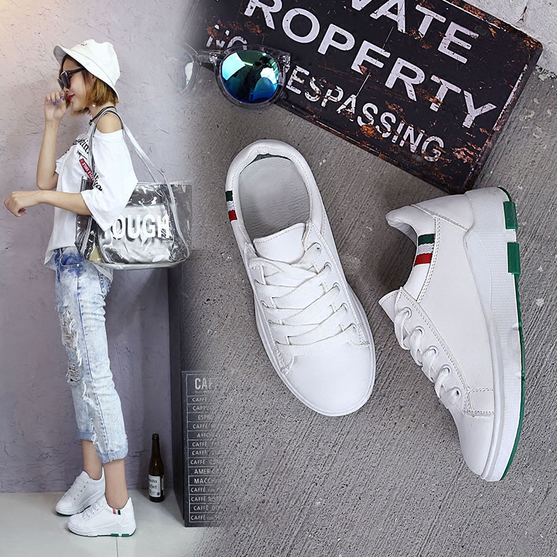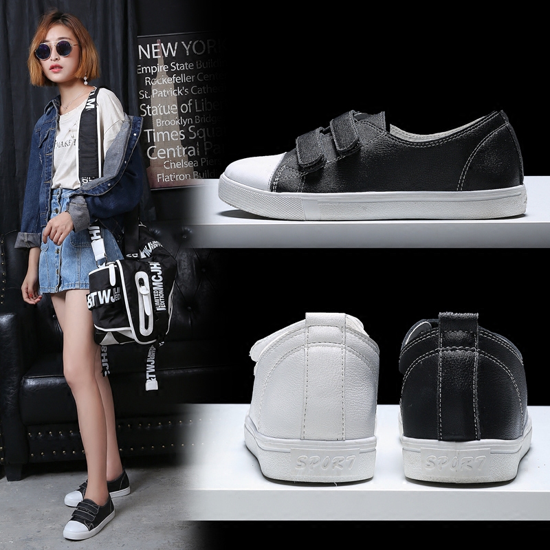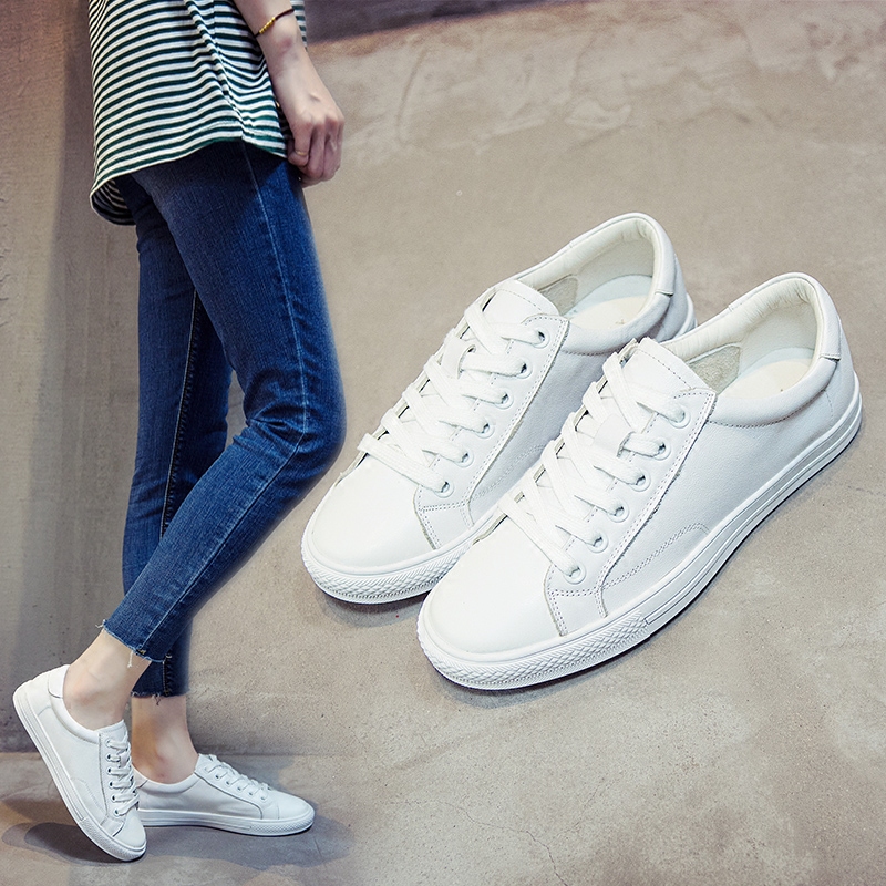 叙美牛皮系带休闲鞋软底秋女单鞋小白鞋平底学生鞋板鞋新款跑步鞋