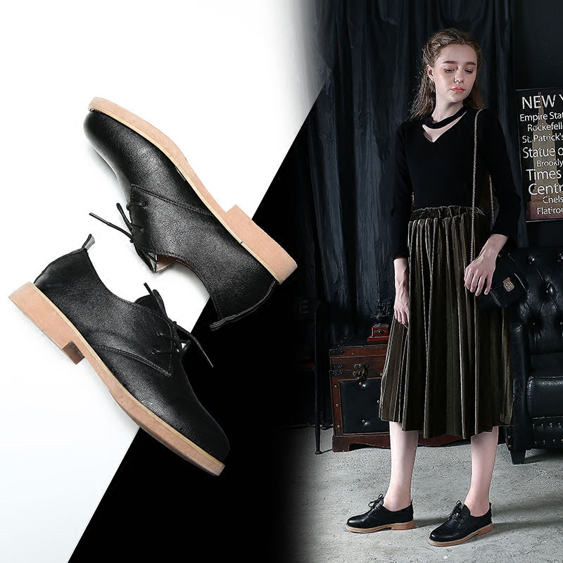 妙钻英伦系带小皮鞋女2017秋季新款学生平底百搭单鞋复古休闲女鞋