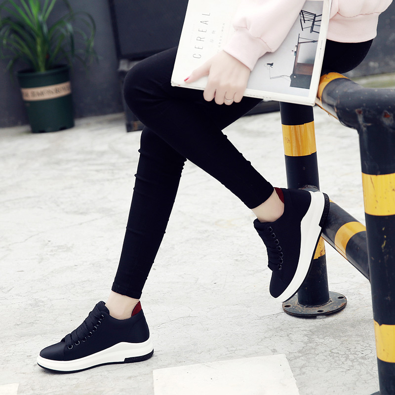2017新款秋季厚底松糕女鞋韩版平底百搭透气黑色休闲鞋运动女单鞋