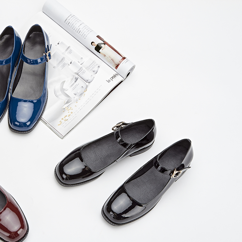秋季新款蓝色单鞋女真皮浅口软妹鞋子文艺复古玛丽珍一字扣乖乖鞋